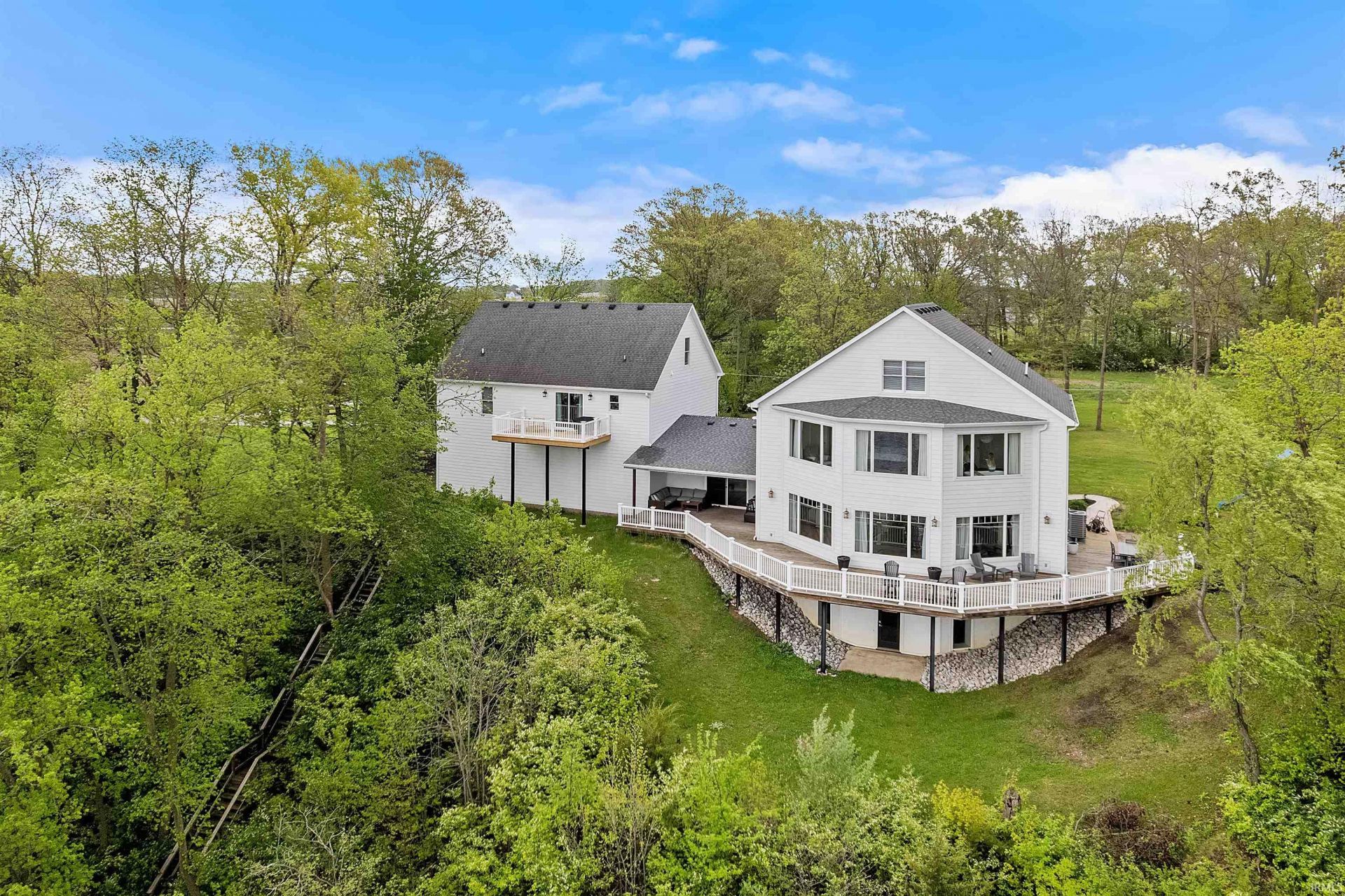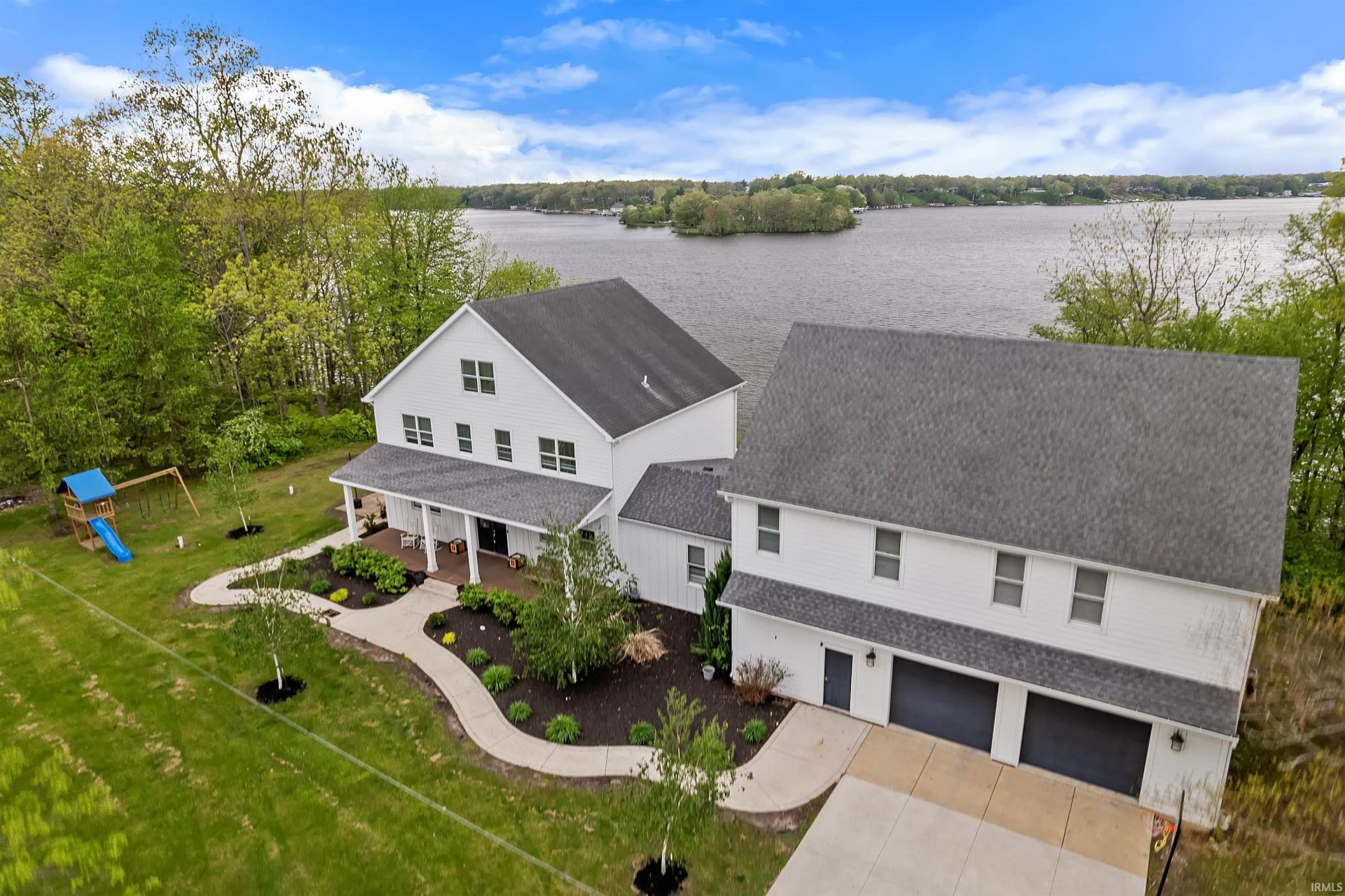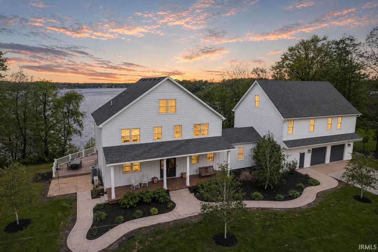 Luxury meets space with this stunning Lake Freeman property offering .88 acres and 176 feet of prime lake frontage, complete with a steel seawall and permanent covered boat lift. The main home features high-end finishes throughout, including LVP flooring, crown molding throughout, and a gourmet kitchen with quartz countertops, tile backsplash, large island, and commercial-sized refrigerator. The spacious primary suite showcases incredible lake views, dual walk-in closets, and a spa-like bath with tiled shower, soaking tub, and double vanity. Enjoy 10' ceilings, a fireplace, and expansive windows filling the home with natural light and breathtaking views. The main residence offers 4 bedrooms and 3.5 baths, while the updated apartment above the oversized 32x44 attached garage includes 4 bedrooms and 2 baths?ideal for guests or rental income. Lakeside decks span the home, creating the perfect space for entertaining and relaxing. Additional highlights include durable concrete board siding for low maintenance and a brand new roof scheduled for 2026. The apartment is currently rented for $1,000/month with exceptional tenants. A rare opportunity with 8 bedrooms, 5 full baths, and 2 half baths?plenty of space for everyone!