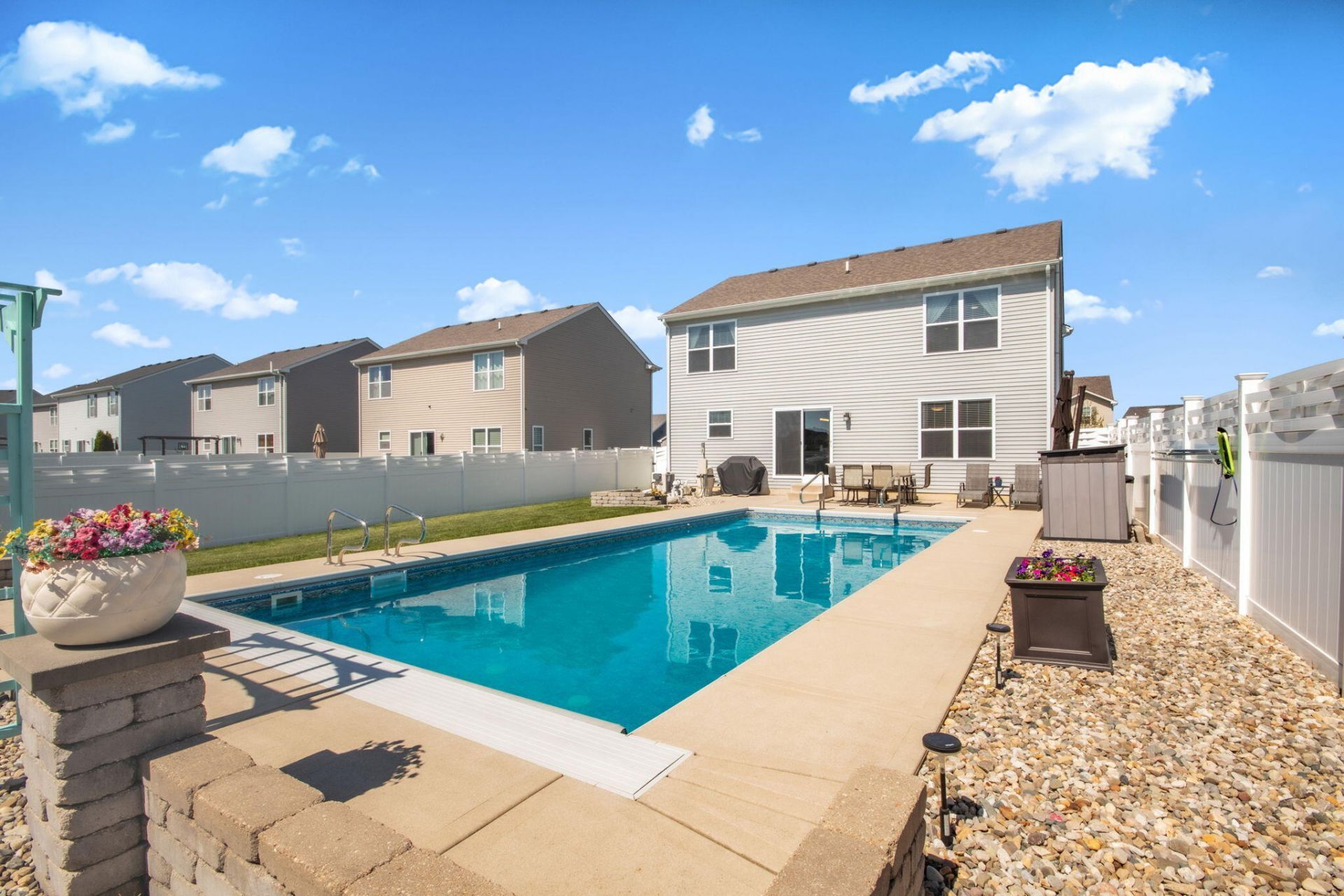 Come and see this beautifully maintained two-story home in The Regency, one of Crown Point's most sought-after newer subdivisions. This corner-lot property offers 3 bedrooms, 2.5 bathrooms, a versatile second-floor loft (easy 4th-bedroom conversion), and a fully finished basement, totaling well over 2,700 square feet of finished living space. Entertain inside and out: the bright open-concept main level flows from the great room through a generous kitchen, while the fully fenced backyard delivers what Northwest Indiana buyers rarely find at this price, a true in-ground heated pool with DE filtration, gas heat, and a walkable safety cover, surrounded by a concrete patio with a permanently installed shade umbrella. Inside you'll find fresh paint throughout the main living areas, second-floor laundry, a large primary suite with walk-in closet, and a finished basement currently set up as a dance and fitness studio with mirrored walls and padded flooring. Crown Point Schools, easy commuter access to I-65, and minutes to the historic Crown Point Square and the Square's restaurants and shops. Move-in ready with rare backyard amenity, schedule your private tour today.